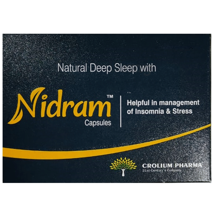 Nidram Capsule Nidram Capsule is a natural solution to blissful sleep. It helps in the management of insomnia and stress. It offers the goodness of scientifically and clinically proven herbs. Key Ingredients: Tagara,Sarpgandha,Ashwagandha,Jatamansi Key Benefits: