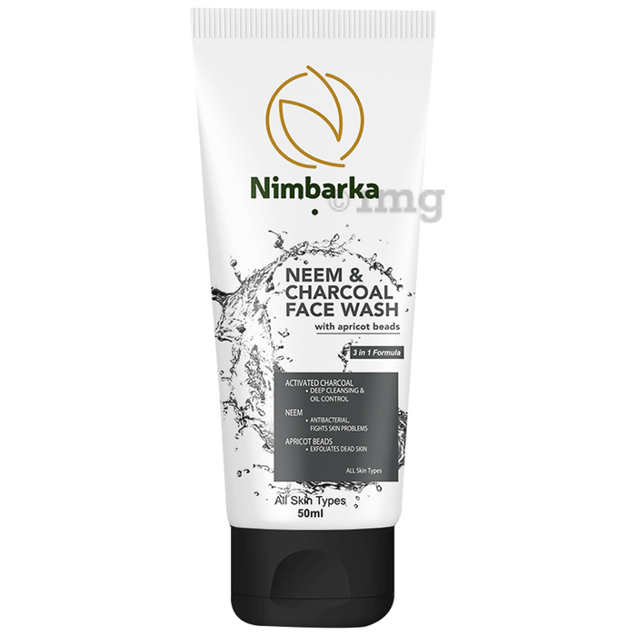 Nimbarka Neem and Charcoal Face Wash is a 3-in-1 formula enriched with activated charcoal, neem, and apricot beads. It may help deeply cleanse the skin, control oil, and exfoliate dead skin cells, leaving the skin refreshed and glowing. The antibacterial properties of neem may help fight various skin problems, while activated charcoal may help clear clogged pores, and apricot beads may help exfoliate dead skin, promoting smoother and healthier skin.