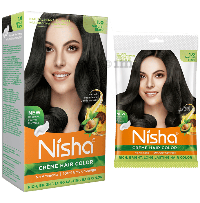 Nisha Combo Pack of Creme Hair Color (Box 120ml and Packet 40ml) 1 Natural Black
