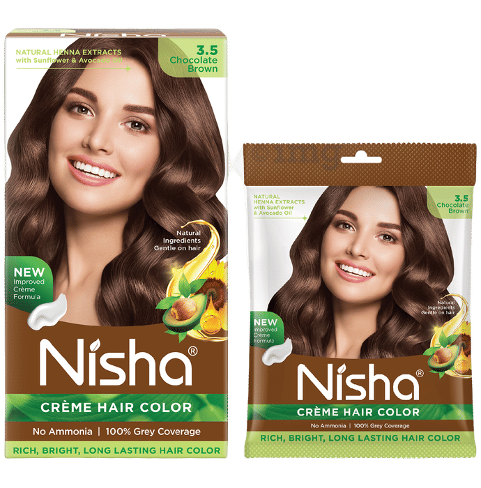 Nisha Combo Pack of Creme Hair Color (Box 120ml and Packet 40ml) 3.5 Chocolate Brown