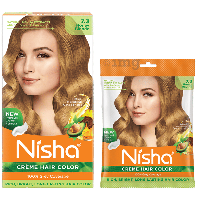 Nisha Combo Pack of Creme Hair Color (Box 120ml and Packet 40ml) 7.3 Honey Blonde