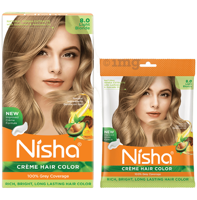 Nisha Combo Pack of Creme Hair Color (Box 120ml and Packet 40ml) 8 Light Blonde