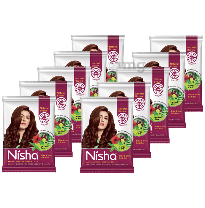 Nisha Natural Henna Based Hair Color Natural Brown Pack of 10