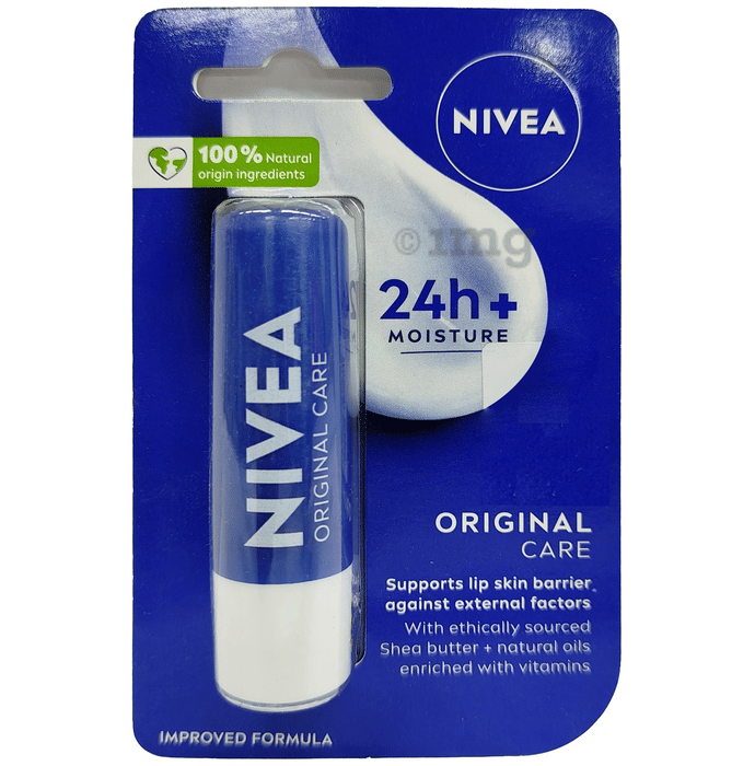 Nivea Lip Balm Original Care is formulated with rich care and essential protection that prevents the lips from drying out and keeps them soft and supple. The lip balm provides 24-hour moisture retention in the lips and reduces dryness and discomfort. Moisturising ingredients like shea butter and natural oils in the lip balm provide much-needed nourishment and moisturisation to the lips.