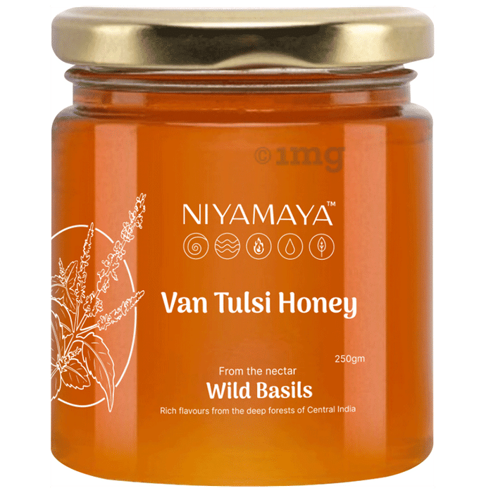 Niyamaya Van Tulsi Honey is a single-origin, raw honey collected from the nectar of wild-growing Van Tulsi (forest basil) flowers native to the dense forest regions of Central India. Extracted with minimal processing, this honey retains its natural floral aroma, dense texture, and rich colour. It contains naturally occurring carbohydrates, small amounts of minerals, and bioactive plant compounds that may assist in supporting general wellness when used as part of a balanced diet. Its strong herbal notes make it suitable for culinary use in beverages, breakfast items, or as a wholesome table sweetener.