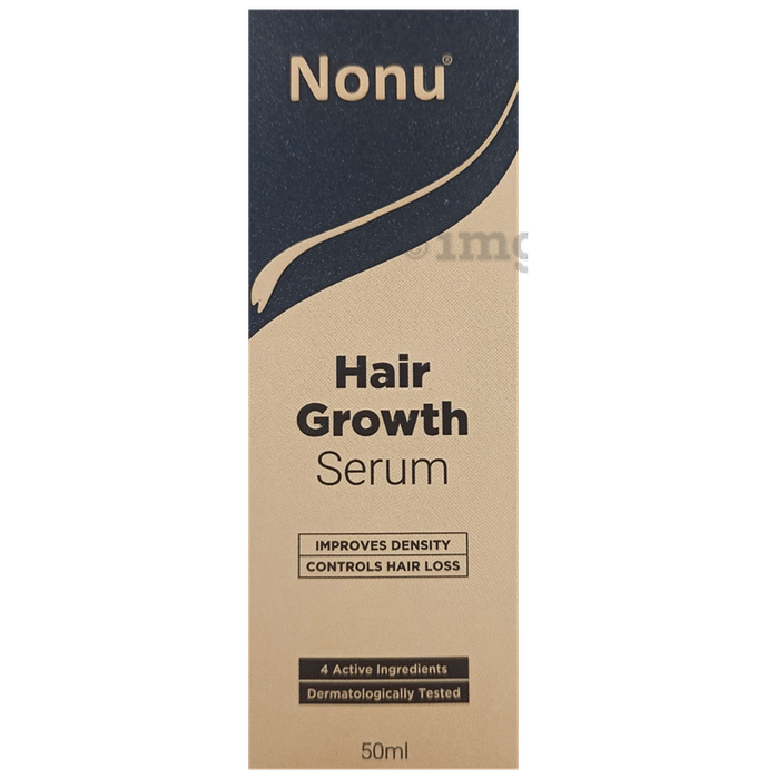 Nonu Hair Growth Serum is a hair care solution made with 4 active ingredients: Redensyl, Anagain, Procapil, and Baicapil, along with Biotin, Tea Tree Oil, and Rose Extract. These ingredients work together to support hair growth, strengthen roots, and manage mild to moderate hair loss. Dermatologically tested, this serum is suitable for both men and women, offering a natural and effective approach to hair health. The non-greasy formula is easy to apply and absorbs quickly into the scalp, making it perfect for daily use. For best results, use consistently for 4-6 months.