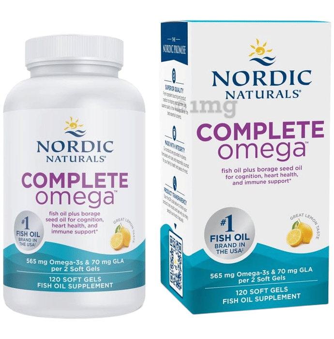 Nordic Naturals Complete Omega 565mg Softgel Complete omega 3 supplement combines omega-3s, EPA and DHA from fish oil with the unique omega 6 gamma-linolenic acid (GLA) and omega 9 oleic acid from borage seed oil. The perfect balanced combination of omegas 3, 6, and 9 nourishes skin, promotes a healthy mind and supports joint health. This formula works as a brain health supplement and is good for skin health. Borage (borago officinalis) is a bee-friendly flowering plant with beautiful star-shaped blooms and is one of natures richest sources of GLA. It combines pure, fresh omega-3 fish oil with sustainably sourced borage oil. Every batch of Nordic Naturals fish oils is tested by a third-party certified lab for environmental toxins, including heavy metals. All fish oils omega 3 capsules are in the triglyceride form and surpass the strictest international standards for purity and freshness.