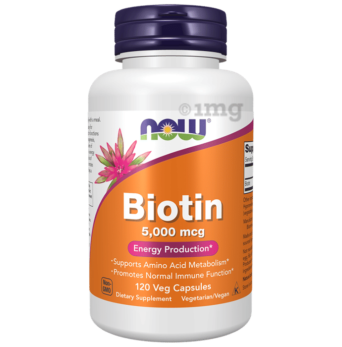 NOW Foods Biotin 5000mcg Veg Capsule is a dietary supplement that helps the body’s immune system by boosting the regeneration of amino acids in the body. It also helps with energy levels in the body and other benefits include fostering hair growth.