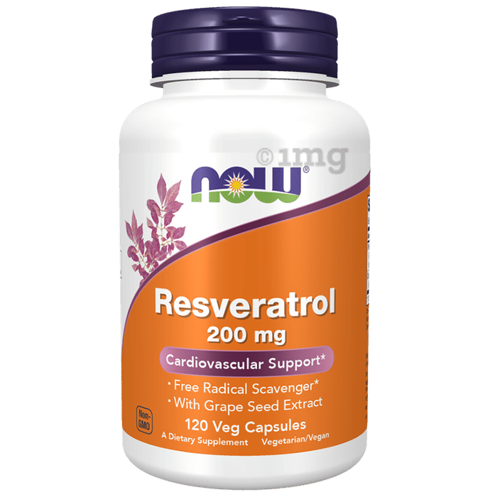 Now Resveratrol 200 mg Capsule is a dietary supplement formulated with trans-Resveratrol derived from Japanese Knotweed (Polygonum cuspidatum) and enriched with Grape Seed Extract standardised for polyphenols. Resveratrol is a naturally occurring polyphenolic compound which can help provide antioxidant and cellular anti-ageing properties. It can help support cardiovascular health, assist cellular vitality, and encourage a healthy inflammatory response. This supplement is ideal for adults and can help support overall wellness and protect against oxidative stress.