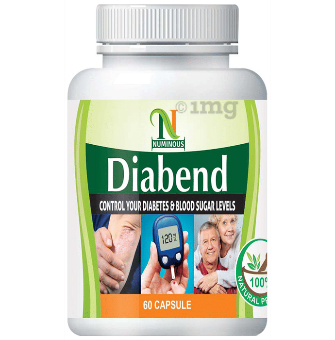 Numinous Diabend Capsule is an ayurvedic herbo-mineral formulation that boosts the pancreas to secrete more insulin. It regulates the blood sugar and blood pressure levels in the body. It also aids in weight loss and helps prevent heart and kidney disorders. It is a GMP-certified formula without any side effects and is free from added colours and preservatives.