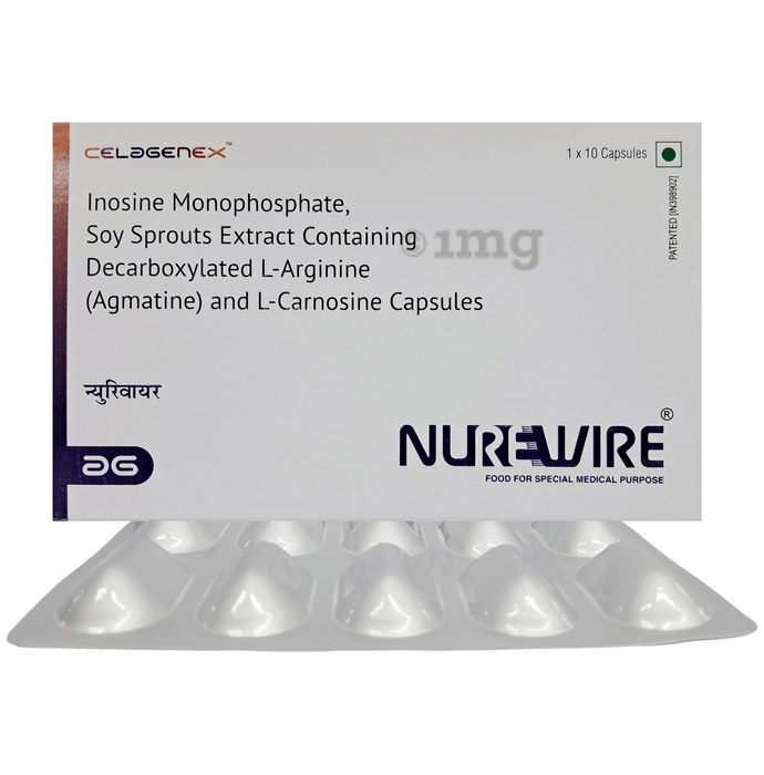 Nurewire Capsule is a nutritional supplement that supports nerve health and athletic performance. It consists of inosine monophosphate, agmatine sulphate, and l-carnosine which are constituents related to the neurological system.