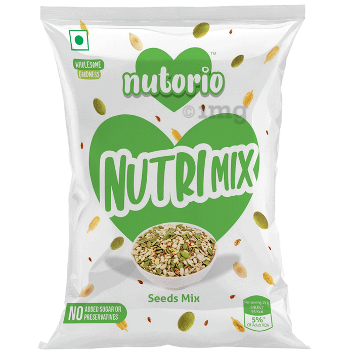 Nutorio Nutri Mix (15gm Each) is a healthy and wholesome mix of flax, pumpkin, watermelon and sunflower seeds that provides multiple health benefits. It serves as a healthy snack and can be used as a topping on smoothies, shakes and desserts.