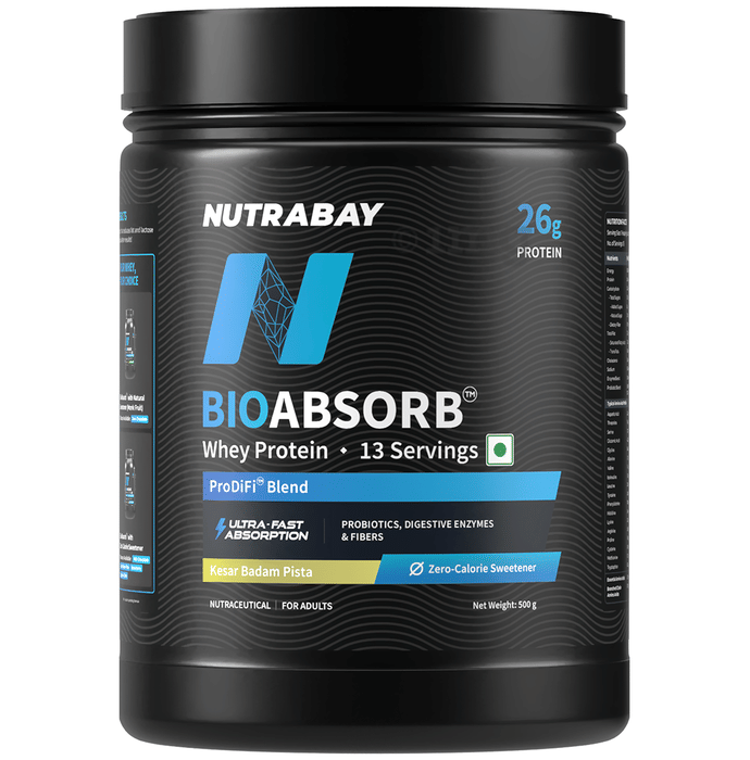 Nutrabay Bioabsorb Whey Protein Powder Kesar Badam Pista
