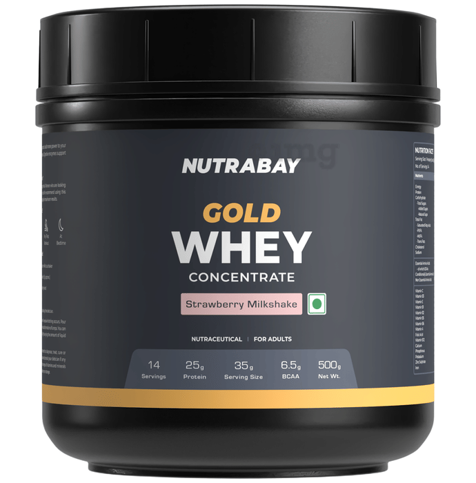 Information about Nutrabay Gold Concentrate Whey Protein for Muscle Recovery | No Added Sugar Powder Strawberry Milkshake