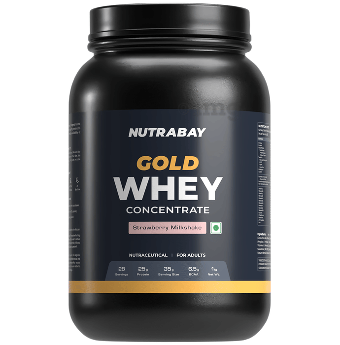 Information about Nutrabay Gold Concentrate Whey Protein for Muscle Recovery | No Added Sugar Powder Strawberry Milkshake