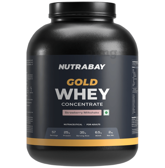 Information about Nutrabay Gold Concentrate Whey Protein for Muscle Recovery | No Added Sugar Powder Strawberry Milkshake