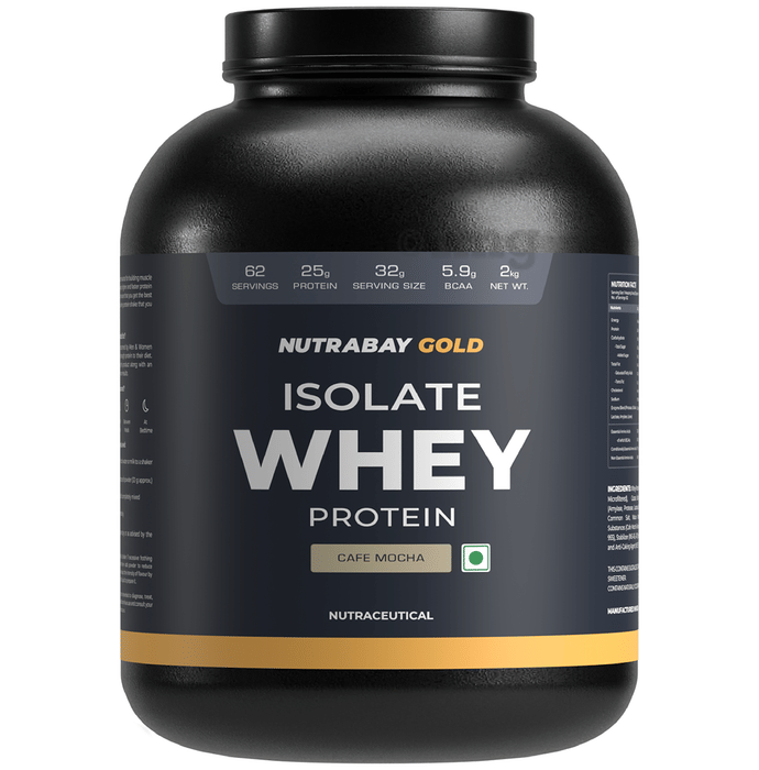 Nutrabay Gold Isolate Whey Protein for Muscles, Recovery, Digestion & Immunity | No Added Sugar | Flavour Cafe Mocha