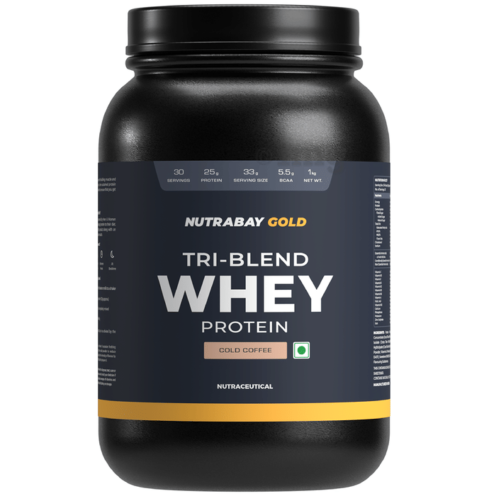 Nutrabay Gold Tri-Blend Whey Protein is designed to give you a rich protein source for building muscle and promoting faster recovery. It is a tri-blend of Concentrate, Isolate and Hydrolysed whey for a time sustained protein release in the body. The highest quality ingredients available in the market have been used to ensure that the best results. The unique, highly researched and best in class flavours get the consumer a delicious whey protein shake that one would love drinking every time.