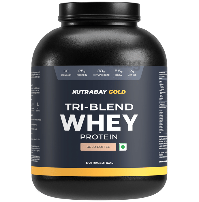 Nutrabay Gold Tri-Blend Whey Protein is designed to give you a rich protein source for building muscle and promoting faster recovery. It is a tri-blend of Concentrate, Isolate and Hydrolysed whey for a time sustained protein release in the body. The highest quality ingredients available in the market have been used to ensure that the best results. The unique, highly researched and best in class flavours get the consumer a delicious whey protein shake that one would love drinking every time.
