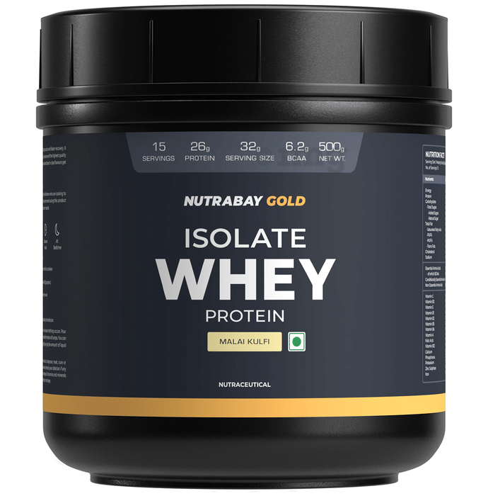 - Nutrabay Whey Protein Isolate is a rich source of protein, assisting in the development of lean muscle mass