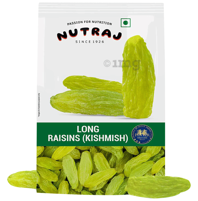 - Nutraj Long Raisins are distinguished by their green colour, longer shape, and fresh nature, providing a unique and delightful snacking experience