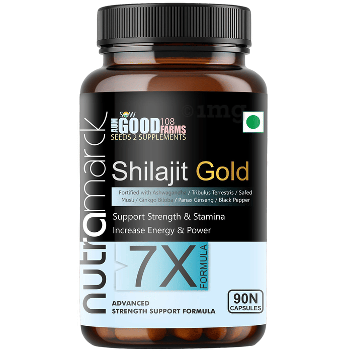 NutraMarck Shilajit Gold Capsule is an advanced dietary supplement crafted with a potent 7X formula containing a blend of Shilajit, Ashwagandha, Panax Ginseng, Gokshura, Safed Musli, Ginkgo Biloba, and Black Pepper, designed for those seeking nutritional support for endurance, energy levels, and focus.