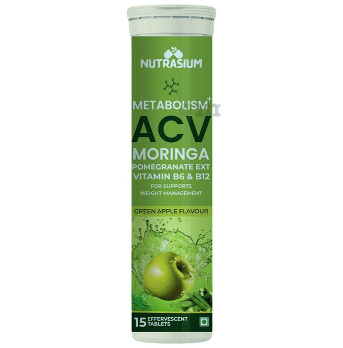 Nutrasium ACV Moringa Effervescent tablets (15 Each) For Boost Metabolism, Support Weight Management Green Apple