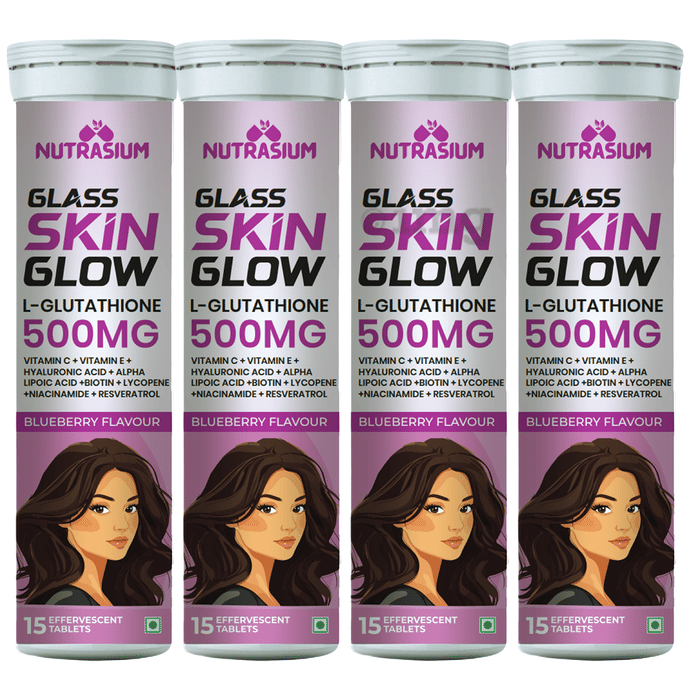 Nutrasium Glass Skin Glow L-Glutathione 500mg Effervescent Tablet (Blueberry Flavour) is a nutraceutical supplement formulated to help contribute to healthy, radiant skin and antioxidant protection. It combines L-Glutathione with Vitamin C, Hyaluronic Acid, Biotin, and Resveratrol to help support skin luminosity and overall wellness. This advanced 9-in-1 antioxidant blend helps support skin radiance, hydration, and overall cellular protection, while maintaining healthy hair and nails.