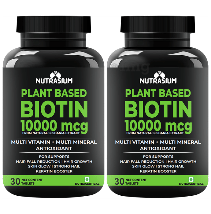 Nutrasium Plant Based Biotin 10000 mcg Tablet (30 Tablet) combines biotin from Sesbania Grandiflora extract with multivitamins, minerals, and antioxidants. This formulation may support hair growth, maintain hair texture, and reduce hair splitting. It also provides nutritional support for skin radiance and nail strength. Additionally, the nutrients may support overall joint comfort and flexibility while helping maintain daily vitality.