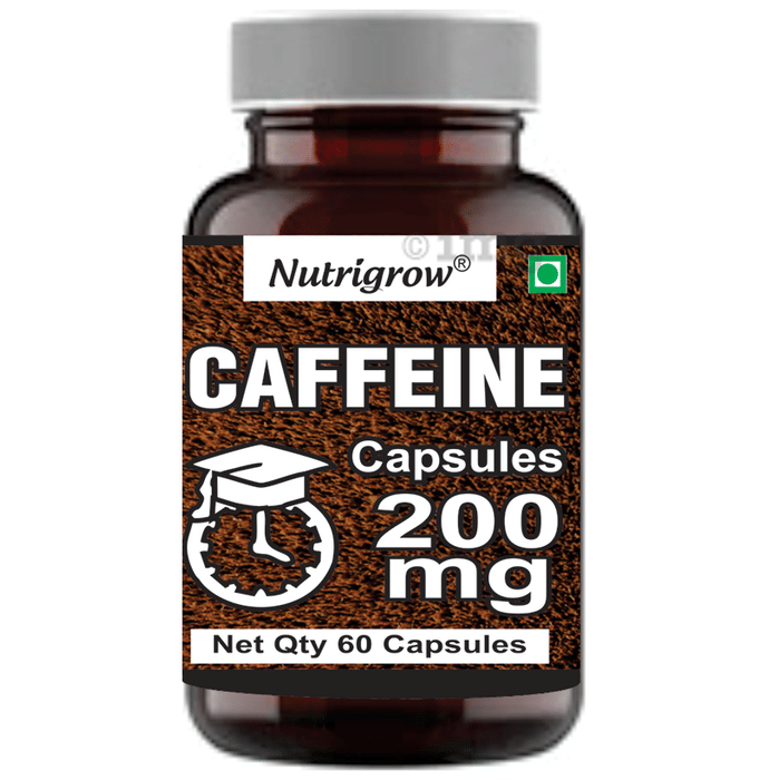 Nutrigrow Caffeine 200mg Capsule is formulated to deliver 200mg of caffeine in each serving which helps build focus and endurance for a workout. It acts as a central nervous system stimulant and energy booster for better workout results. It is helpful for fitness enthusiasts and helps boost concentration, mental alertness, and wakefulness. It might prove helpful for relieving headaches and migraines. Caffeine may be beneficial in assisting with weight management