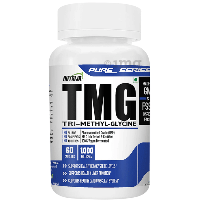- 1000 mg of pure Trimethylglycine (TMG) per capsule