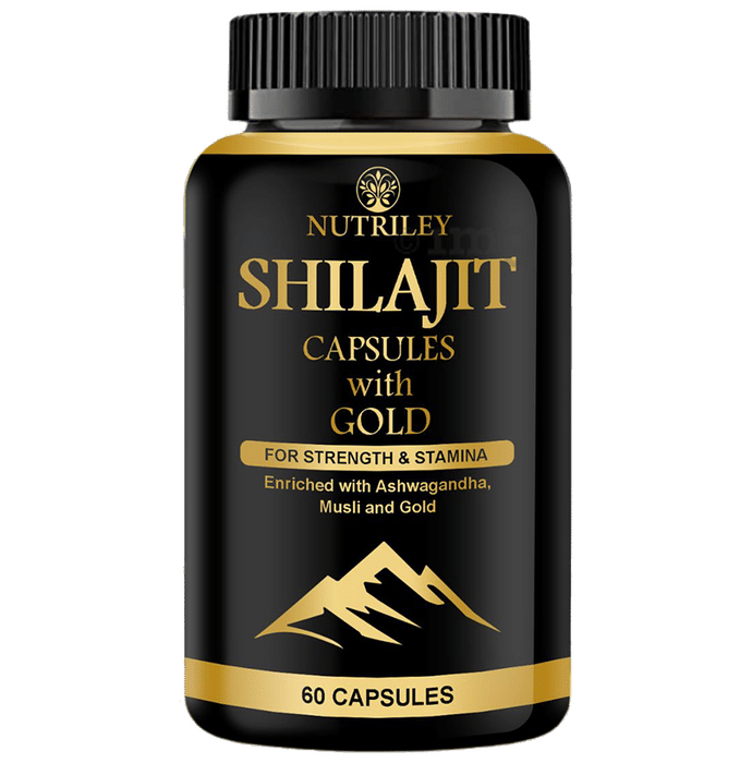 Nutriley Shilajit Capsule with Gold has natural antioxidant and anti-inflammatory properties. It helps improve immunity and acts as a memory enhancer. It supports male sexual health and helps improve performance, strength and stamina. It also helps improve vigour and vitalilty.