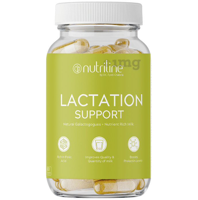 Nutriline Lactation Support Capsule is a carefully formulated vegetarian dietary supplement designed to help support breastfeeding by assisting milk production and overall lactation health. This capsule features a synergistic blend of galactagogue herbs such as Cumin, Fenugreek, Shatavari, Moringa, along with Amla and Aloe Vera, that may help support prolactin levels, improve milk quantity and quality, and provide gentle care for both mother and baby.