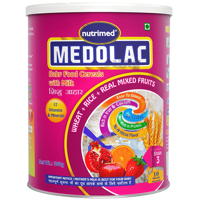 Nutrimed Medolac Wheat + Rice + Real Mixed Fruits Baby Food Cereals with Milk 10 Months Onwards Stage 3
