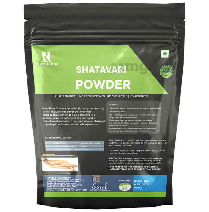 NutriRione Shatavari Powder is well known for its effect on the female reproductive system. It is also effective in a number of other systems of the body and is therefore of use to both men and women. Shatavari is perhaps best known as a female rejuvenate.