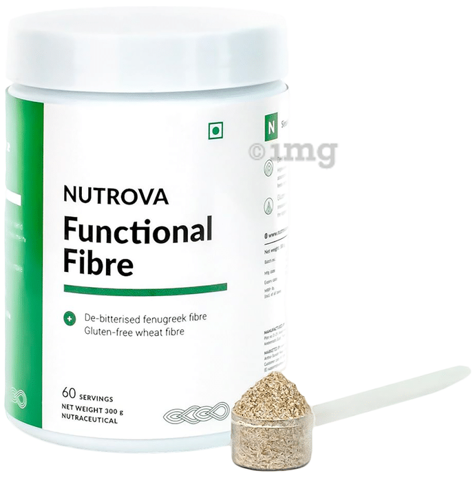Nutrova Functional Fibre Powder contains a highly effective blend of natural fibre from fenugreek (methi) seeds and gluten-free wheat. It feeds our good gut bacteria(as a prebiotic), for better gut health, improves bowel movements, lipid levels and general wellbeing. It is Ideal for low-carbohydrate diets/diets lacking in high-fibre foods. Nutrova Functional Fibre contains a superior blend of fibres - 'Fenugreek galactomannan’ from fenugreek (methi) seeds: exceptionally soluble fibre that moves material through the digestive system, absorbs fats & sugars, and feeds our good gut bacteria. It also has gluten-free wheat fibre extract: excellent insoluble fibre, which adds bulk to waste and encourages bowel movements.