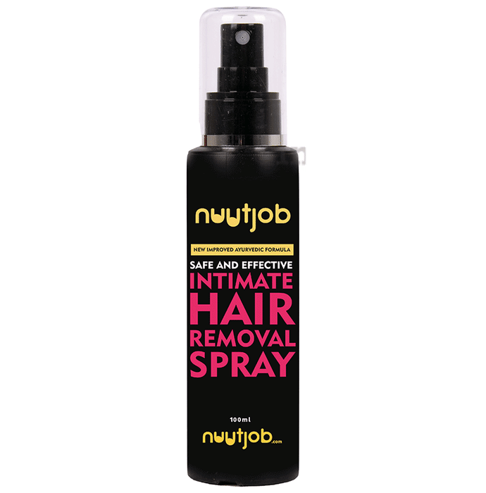Nuutjob Intimate Hair Removal Spray is made of an effective and improved Ayurvedic formula which is a convenient and modern solution to harmless and effective intimate hair removal. With soothing ingredients like aloe vera extract and olive oil the skin's moisture is not compromised while also assuring a smoother regrowth. It is associated with a painless procedure and is suitable for all skin types. Unlike razors and other trimming products that cause irritation and itching, this product leaves buttery smooth skin after usage.
