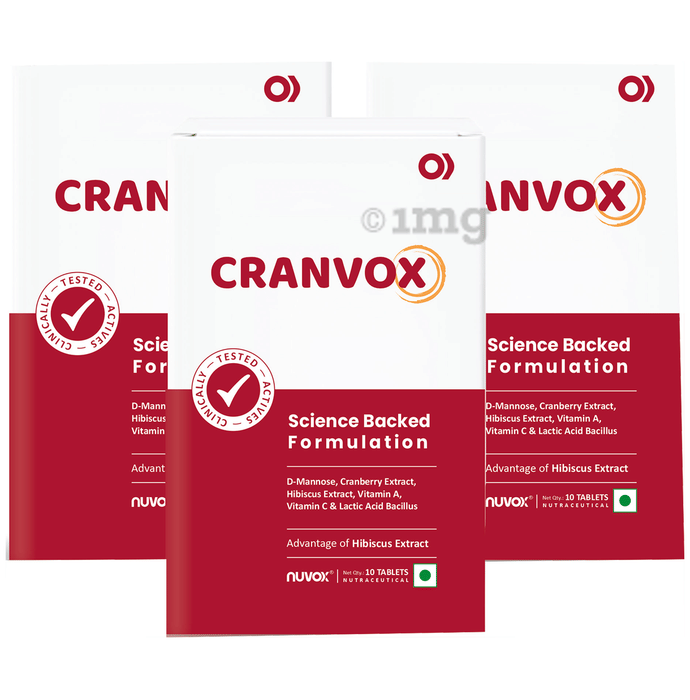 Cranvox Tablet is a urinary wellness formulation containing D-Mannose, Cranberry Extract, and Probiotics. This combination may help support urinary tract health by maintaining microbial balance and supporting bladder comfort. The ingredients are selected to help assist the body's natural cleansing processes and help maintain overall urogenital health.