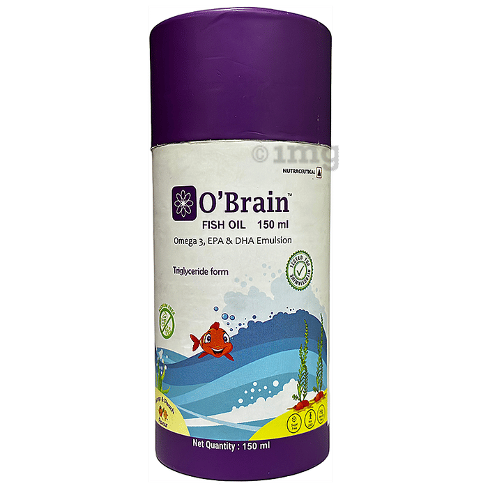 O'Brain Fish Oil is a nutraceutical formulation containing Omega-3 fatty acids in triglyceride emulsion form, derived from perch fish oil. Each serving provides 1410 mg of total Omega-3 fatty acids, including 752 mg of EPA (Eicosapentaenoic Acid) and 470 mg of DHA (Docosahexaenoic Acid), which can help support cellular structure, cardiovascular function, and general wellness. This emulsion is flavoured with mango and peach for better palatability and includes natural sweeteners and stabilisers like xylitol, guar gum, and xanthan gum. The formulation provides a measured source of omega-3s in liquid form, suitable for individuals who prefer alternatives to softgels.