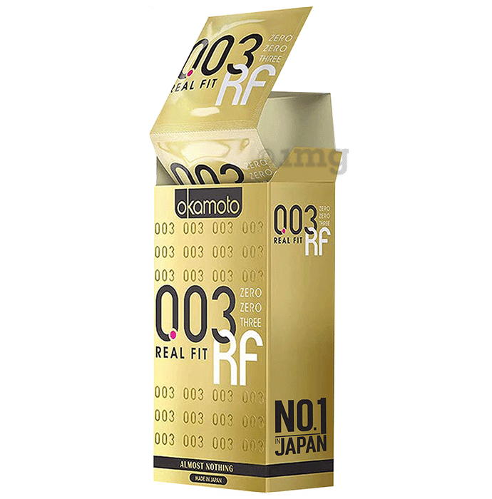 Okamoto 0.03 Real Fit Condom are ultra-thin latex condoms crafted for a natural and comfortable experience. With a nominal width of 52±2 mm and minimum length of 180 mm, they offer a contoured shape that mirrors the male anatomy for a snug fit. Made with patented Sheerlon latex, they are soft to the touch and designed to be completely odour-free. Their consistent thinness from base to tip enhance sensation. Each condom is electronically tested for quality and dependability.