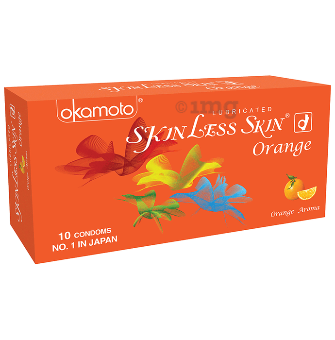 Okamoto Lubricated Skinless Skin Condom Orange condoms are crafted with Sheerlon latex to provide a naturally soft and smooth texture. Designed with a contoured shape and dotted surface, they aim to offer a more stimulating experience. The added signature Orange Aroma enhances comfort with a fresh scent. At just 0.03 mm thin, they closely mimic the feel of skin while maintaining strength. These condoms are lubricated and tested electronically for safety and dependability. Presented in a pink colour, they combine pleasure, comfort, and quality in one premium product.