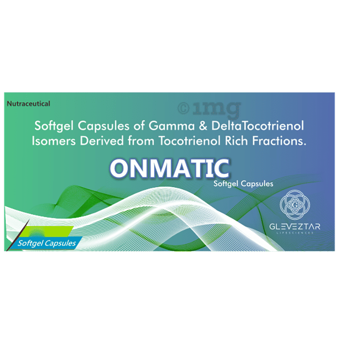 Onmatic Softgel Capsule is a nutraceutical dietary supplement thoughtfully formulated with gamma and delta tocotrienol isomers derived from tocotrienol-rich fractions. Tocotrienols belong to the vitamin E family and may play a functional role in supporting internal antioxidant mechanisms and cellular balance. Each softgel capsule delivers 400 mg of tocotrienol (50%) in a convenient format, crafted for regular use under the guidance of a healthcare professional. This supplement may assist in maintaining general wellness, especially in contexts involving oxidative stress and metabolic regulation. Designed with a blend of stabilising excipients and antioxidants, the formulation supports ingredient stability and integrity over its shelf life, while the softgel format may ensure easier ingestion and improved absorption efficiency.