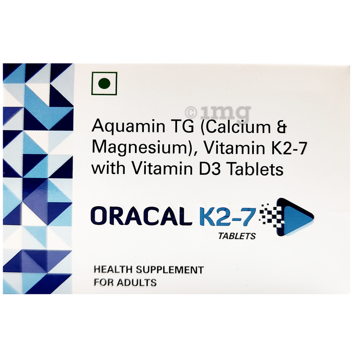 Oracal K2 7 Tablet is a dietary supplement formulated with Aquamin TG (a marine-derived source of calcium and magnesium), Vitamin K2-7, and Vitamin D3. This blend is intended to support bone structure, mineral utilisation, and overall skeletal health. The inclusion of calcium from red seaweed can support the maintenance of healthy bones, while magnesium can contribute to muscle function and mineral balance. Vitamin D3 can help support calcium absorption, and vitamin K2-7 can assist in guiding calcium to appropriate areas in the body. Designed for adults, this supplement can complement daily nutritional intake for those seeking support for structural strength and bone-related wellness.