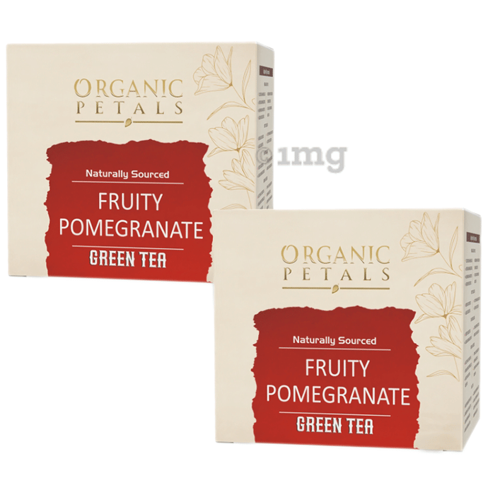 Organic Petals Naturally Sourced Green Tea Bag 2gm (15 Each) Fruity Pomegranate combines the freshness of green tea with the fruity essence of pomegranate. This blend is crafted to provide a unique tea-drinking experience, helping offer a balance of natural flavours and the benefits traditionally associated with green tea.