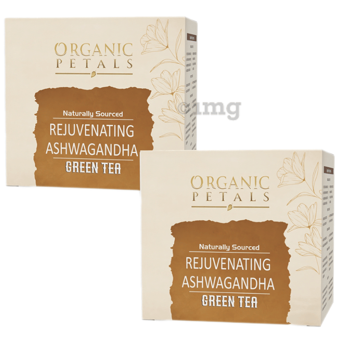 Organic Petals Naturally Sourced Green Tea Bag 2gm (15 Each) Rejuvenating Ashwagandha is a blend of ashwagandha and green tea that can offer a natural way to help support focus, energy, and overall well-being. Ashwagandha is known for its potential adaptogenic properties, while green tea can help provide antioxidants, making this combination ideal for those seeking support for mental clarity and physical stamina.