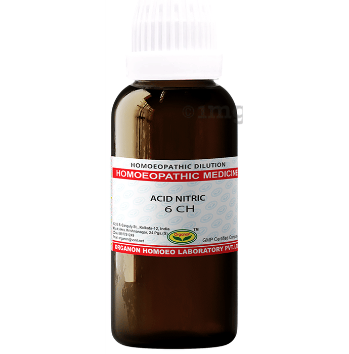 Organon Acid Nitric Dilution is a homoeopathic liquid formulation containing Acid Nitric. The product is formulated by homoeopathic principles and can be used in cases presenting symptoms such as pain, inflammation, mouth ulcers, skin conditions, and sensations of unease.