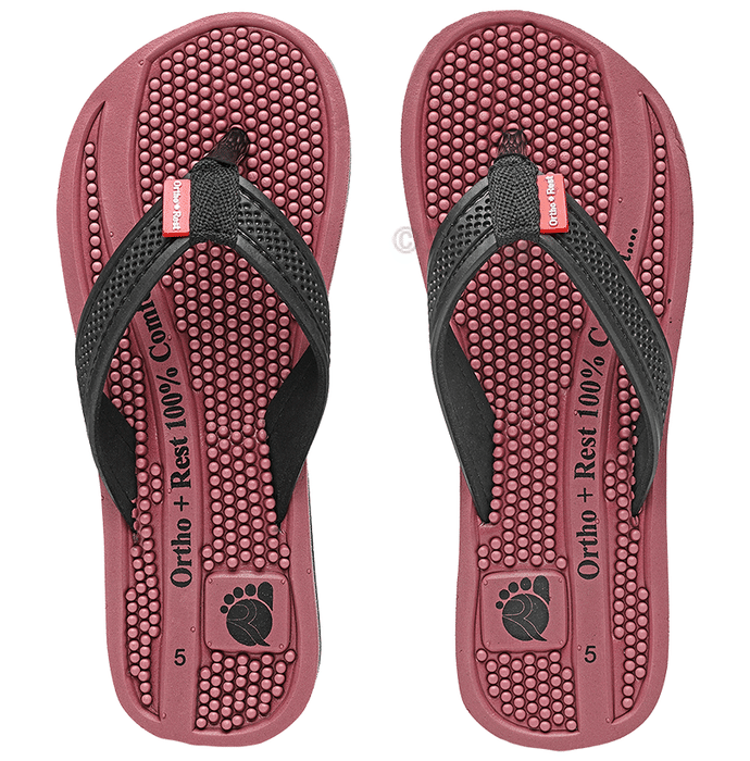 Ortho + Rest L215 Doctor Orthopedic Slippers for Women / Anti Skid Health Flip Flops with Acupressure Massage Footbed / Super Soft and Comfortable Doctor Chappal for Pain Relief Red are designed for women seeking orthopedic support and relief from foot and heel discomfort, these anti-skid flip flops combine therapeutic acupressure stimulation with a super soft and comfortable design. Ideal for daily walking, household wear, and relief from chronic foot fatigue, these slippers can be a go-to solution for aching or sensitive feet.