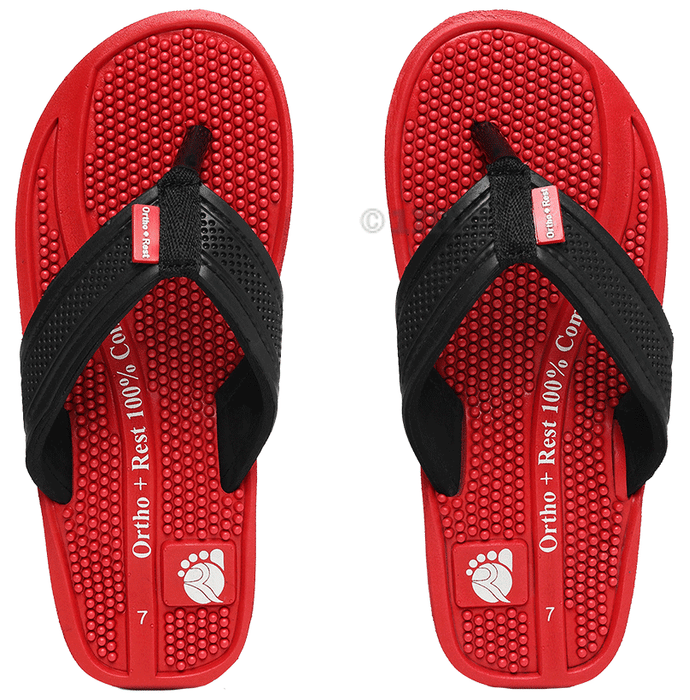 Ortho + Rest M10015 Cool Comfirt for Your Aching Feet Orthopedic Slippers for Men | Anti-Skid Flip Flops with Acupressure Massage Footbed | Extra Soft Red Size 6