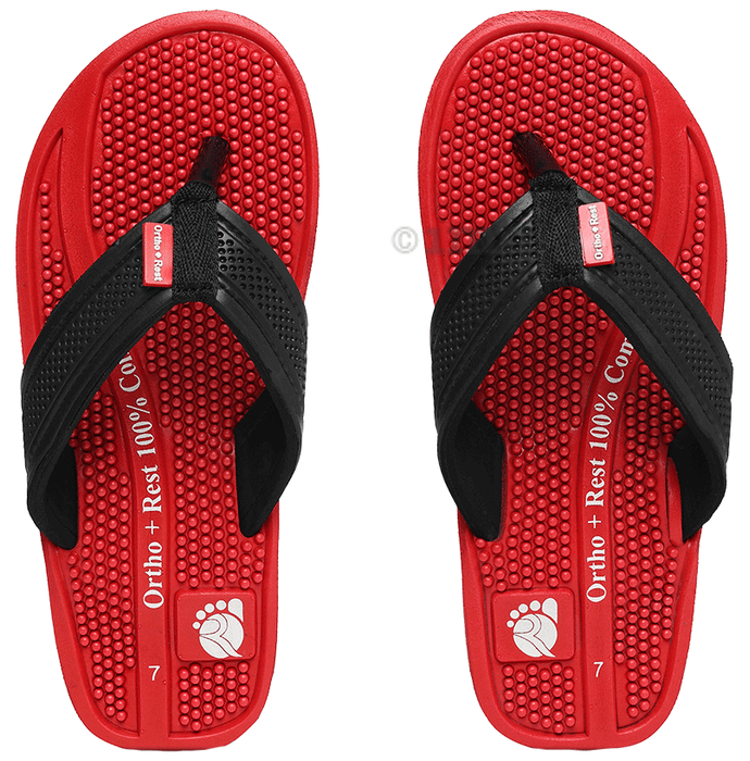 Ortho + Rest M10015 Cool Comfirt for Your Aching Feet Orthopedic Slippers for Men | Anti-Skid Flip Flops with Acupressure Massage Footbed | Extra Soft Red Size 7