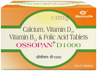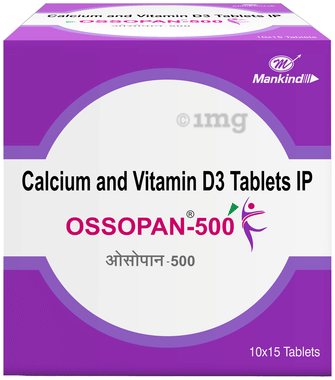 Ossopan 250 Tablet contains calcium carbonate and vitamin D3. Calcium, a crucial mineral, supports bone health by maintaining bone density, aiding muscle function, facilitating nerve signalling, and regulating blood pressure and clotting. Meanwhile, vitamin D3 enhances calcium absorption, promoting strong bones, and additionally supports the immune system, overall well-being, and the prevention of chronic diseases. Together, these ingredients play vital roles in maintaining skeletal integrity, muscle and nerve function, immune health, and overall physiological well-being.